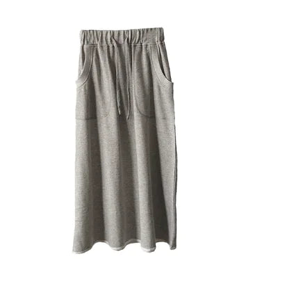 Elastic Drawstring Terry Knit Skirt with Two Pockets